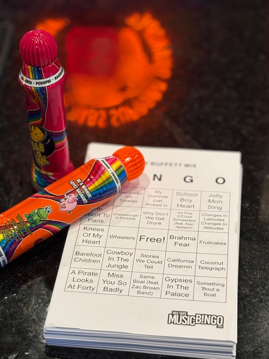 It is music and bingo rolled into one fun day. Instead of numbers and letters, it is songs. You grab a free card and a dauber with your chance to win!